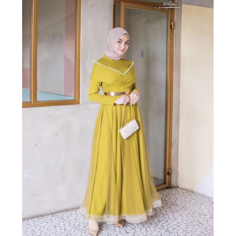 Untuk pengguna hijab, kamu juga bisa join dengan tren yang satu ini untuk mendapatkan kesan yang fresh dan feminim. Gamis dengan warna lime akan cocok digunakan untuk menghadiri acara formal seperti pernikahan, lebaran dan lainnya.